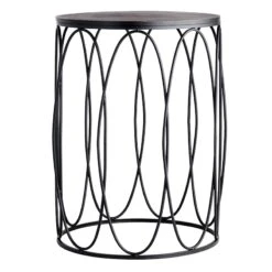 Oval Wood Top Gothic Table With Brown Arch Decorative Metal, Small