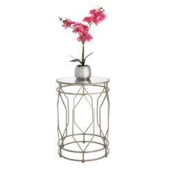 Providence Mirror Top Table With Gold Quatrefoil Base, Small