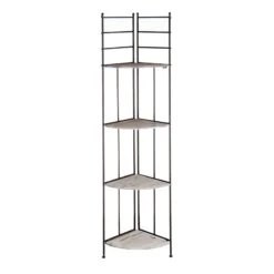 Providence Metal Corner Rack With Folding Wood-Top Shelves, 63"