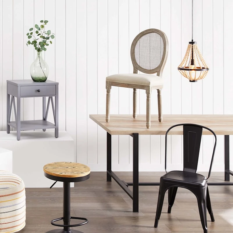 Found & Fable is a new collection that lets you explore what’s right around the corner. Choose your own adventure every day. Savor it all and say yes to what comes next�exclusively At Home. Cool-comfort vibes come to life with our Loggy modern farmhouse dining table. This versatile black metal table with a wood top has a cozy vintage look � stylish with a hint of contemporary charm. The combination of black metal and a natural finish surface easily fits in with a wide range of interiors. There are lots of placement options too: kitchen, dining room, office and so on.