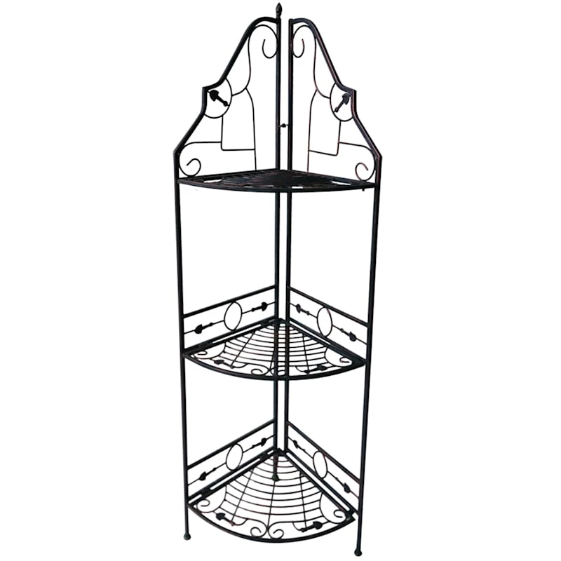 Gold & Black Scrolled Metal Folding Corner Shelf Rack, 51.5"