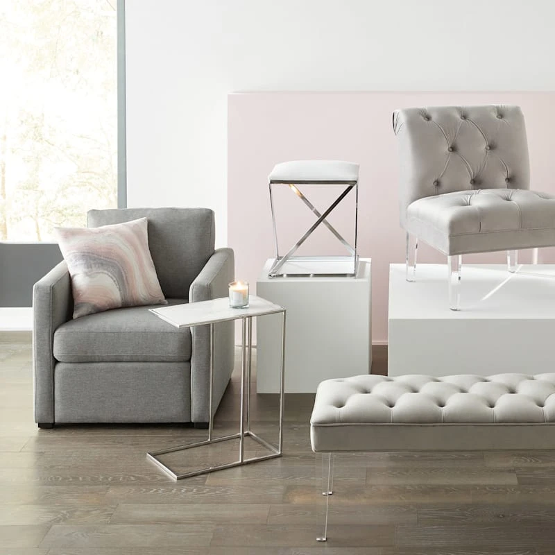 Laila Ali brings the mindset of a world-champion athlete and passion for healthy living to create a modern lifestyle collection with serious style found only At Home. Our convenient marble top C-table is designed to bring convenience to your indoor spaces. The unique C-shaped design makes the side/end table suitable for decorating your deck, courtyard, patio and any outdoor seating arrangement. The bright chrome finish brings a breath of fresh air into any room.