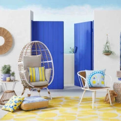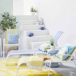 Tracey Boyd Stackable White & Blue Caprice Striped Sling Outdoor Chaise Lounge Chair