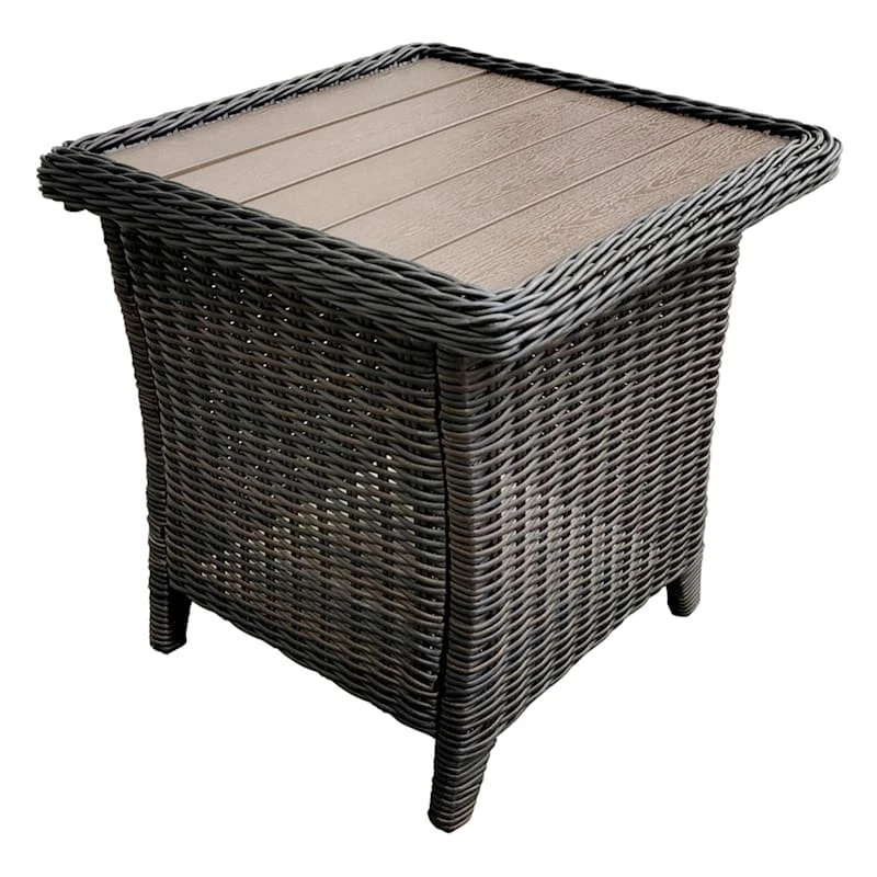 A hand-woven rattan end table offers fantastic texture and convenience that can work with just about any decor style. With its sophisticated and clean square shape and faux wood slat and all-weather wicker construction, our Glendale outdoor end table is handy, sturdy and easy to maintain.