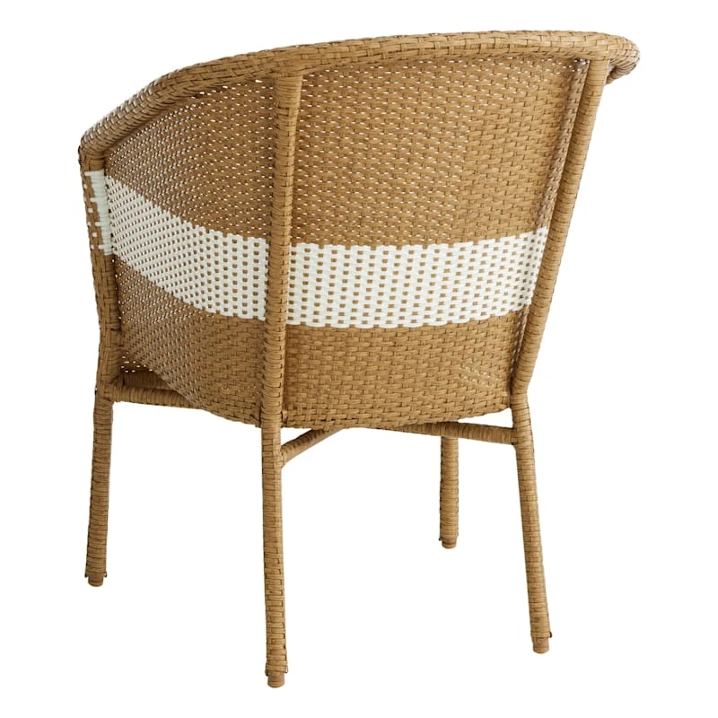 A collection that lets everyone relax in style. Polished finishes and classic hues pair with fun finds. Providence is where elegant settings still feel comfortable and warm—exclusively At Home. Create your own unique outdoor setting with our tan and white wicker armchair and cushion. Crafted of all-weather synthetic wicker, this chair delivers a wonderfully sophisticated look that’s ready for any alfresco situation.