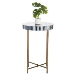 Tracey Boyd Stackable White & Blue Caprice Striped Sling Outdoor Chaise Lounge Chair