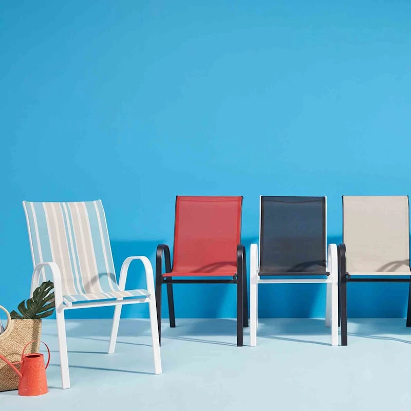 Escape the indoors and get outdoors with our stackable sling patio chair. Buy in multiples and be sure to have enough outdoor seating for family and friends. This outdoor metal dining chair features a simple streamlined look with a metal frame and a comfortable mesh fabric that’s breathable. These stacking chairs will last even longer if protected from the elements. Pair with any patio table or garden stool and enjoy the great outdoors to the fullest.