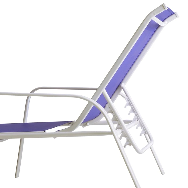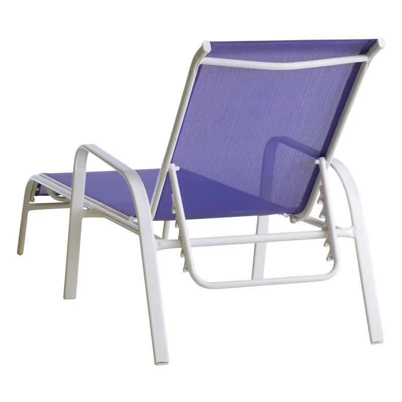 Escape the indoors and get outside with our cobalt blue Sling chaise lounge. A reclining silhouette helps ensure you have a wonderful, relaxing seat for family and friends. This outdoor steel chaise features a simple, streamlined look with a white metal frame and a comfortable cobalt blue mesh fabric that’s breathable. Our Sling chaise lounge will last even longer if protected from the elements. Pair with any patio table or garden stool and enjoy the great outdoors to the fullest.