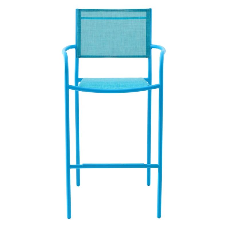Enjoy the season and get outside with our stackable Sunny Club blue Textilene outdoor stackable barstool. Buy in multiples and be sure to have enough outdoor seating for family and friends. This outdoor barstool features a simple, streamlined look with a metal frame and a comfortable mesh fabric that’s breathable. This blue stacking stool will last even longer if protected from the elements. Pair with any patio table or garden stool and enjoy the great outdoors to the fullest.