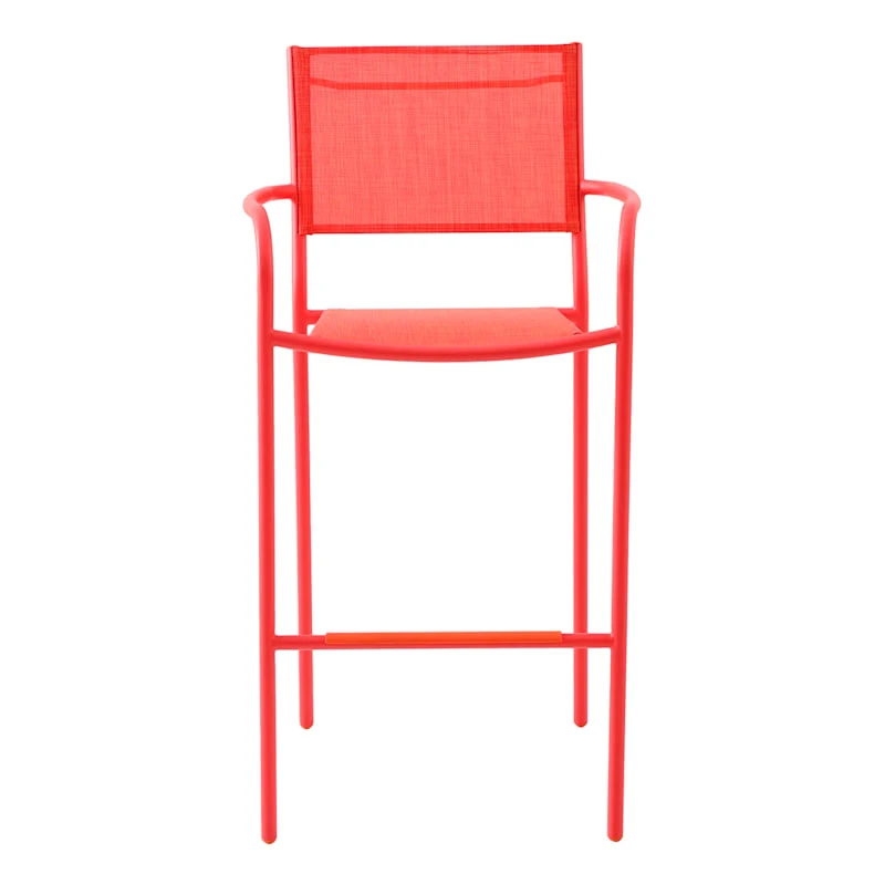 Enjoy the season and get outside with our stackable Sunny Club coral Textilene outdoor stackable barstool. Buy in multiples and be sure to have enough outdoor seating for family and friends. This outdoor barstool features a simple, streamlined look with a metal frame and a comfortable mesh fabric that’s breathable. This coral stacking stool will last even longer if protected from the elements. Pair with any patio table or garden stool and enjoy the great outdoors to the fullest.