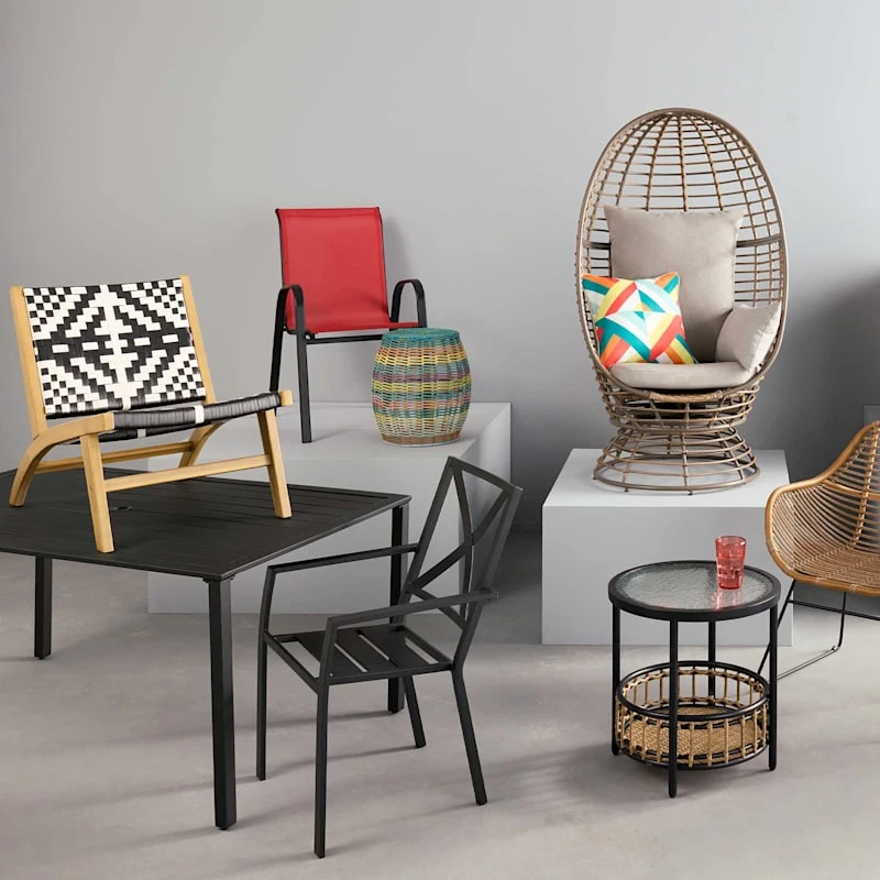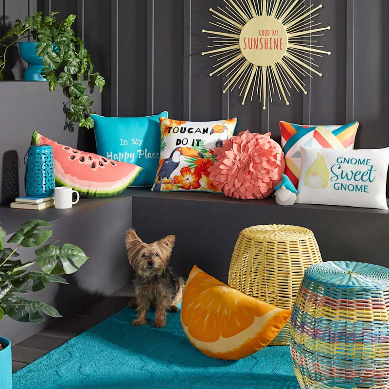On first thought, you might be tempted to relegate our multicolor wicker ottoman to the garden or patio, but it would be just as striking sitting beside your sofa or acting as an end table next to your favorite chair. Designed to live outdoors (or possibly in), this colorful piece is crafted of synthetic wicker and features a lovely curved drum silhouette.
