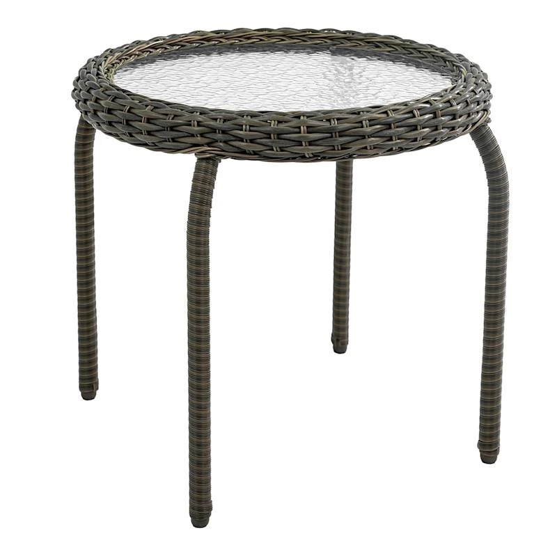 Tempered Glass Top Outdoor Wicker End Table, Brown