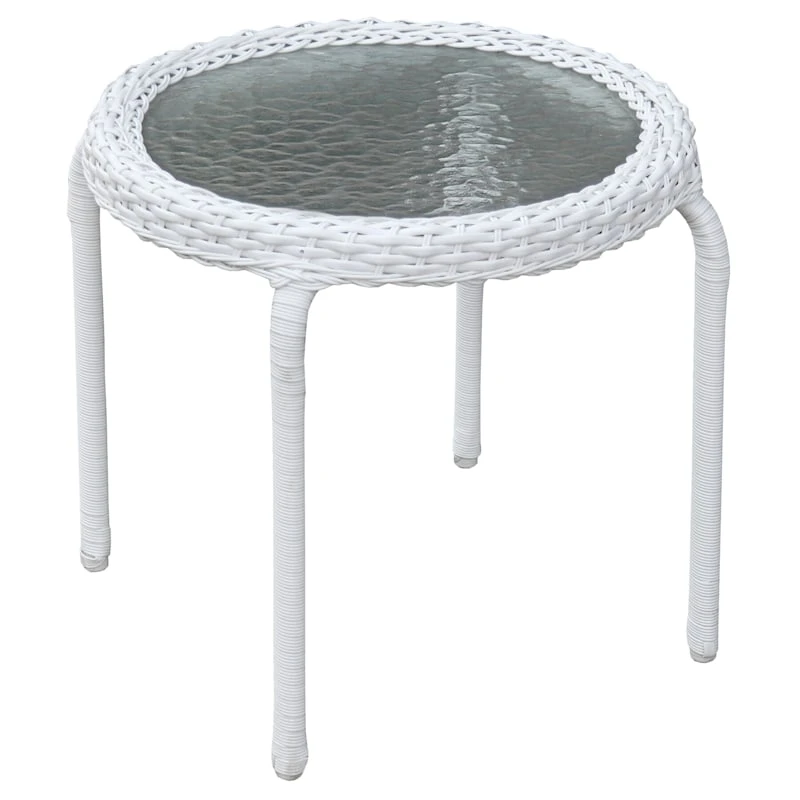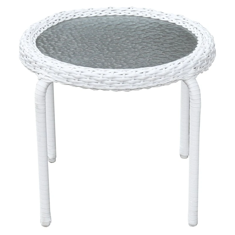 This round wicker table can serve as an outdoor side table, sofa table… whatever you choose. Our white synthetic wicker coffee table is supported by a sturdy metal frame and features a tempered glass top. All-weather wicker is waterproof and withstands the sun without fading.