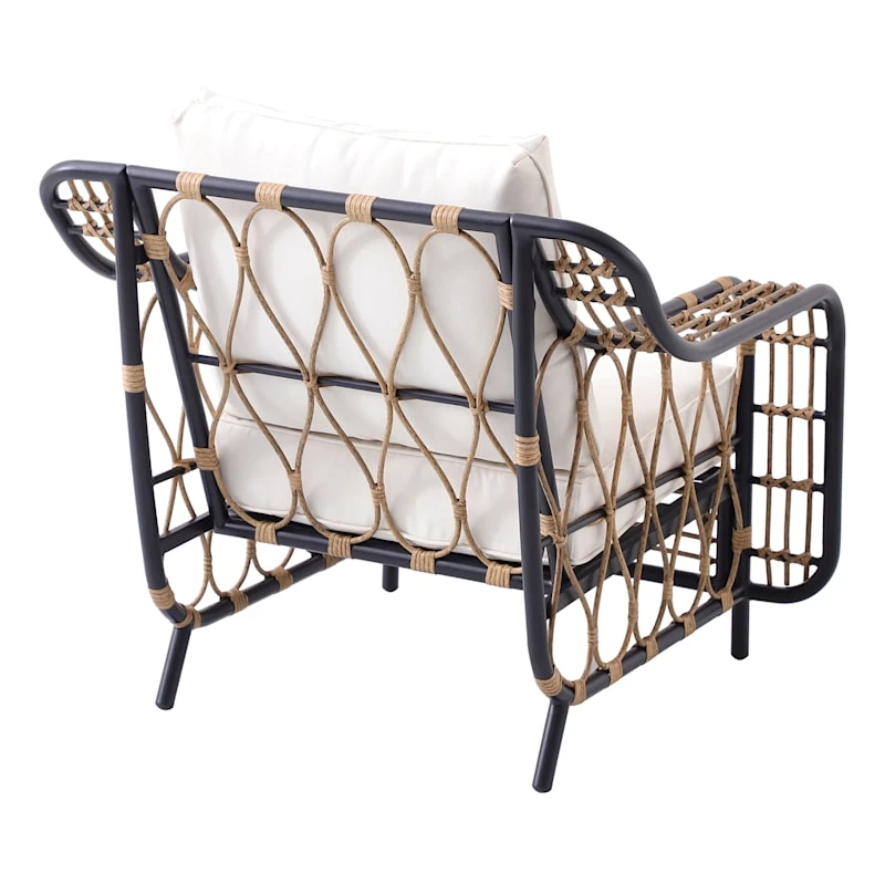 Award-winning London-based fashion designer, illustrator and innovator Tracey Boyd has created a new and exclusive collection for At Home. Now you can enjoy the outdoors while lounging in comfort and style with the Global chair with cushions. Crafted of metal and natural all-weather wicker and high-quality water-resistant tan fabric, this comfy outdoor chair not only looks good but is designed to hold up to the elements and provide the ultimate in enjoyment for years to come.