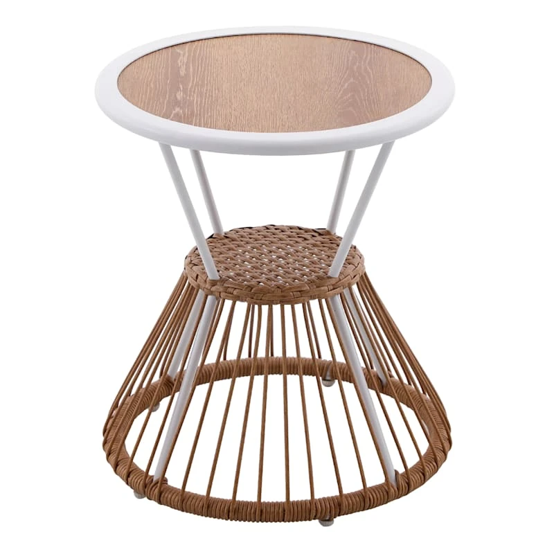 Tracey Boyd Minos Outdoor White Steel & Wicker Side Table